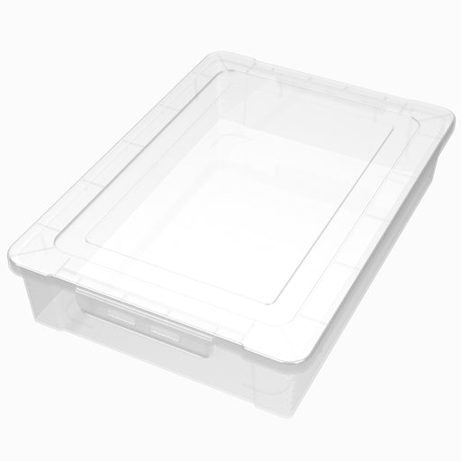 Clear plastic oversize A4 storage boxes with clip on lids. Ideal for a variety of storage applications in the home, office, classroom or craftroom....